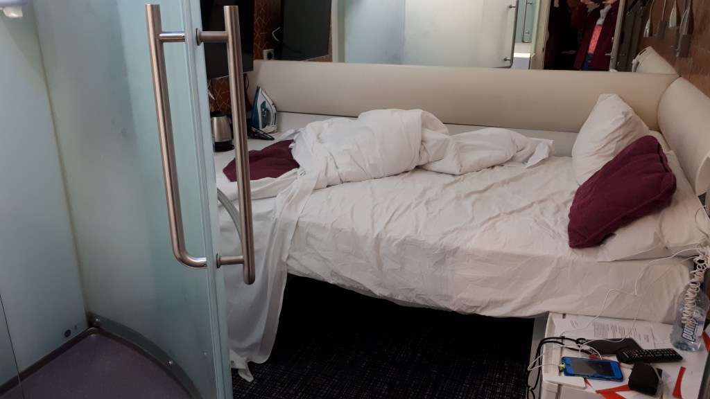 Martina hier: nach der turbulenten Landung holten wir unser Fahrzeug für die nächsten 4 Wochen ab und fuhren zu unserem Hotel. Was sich als komplizierter herausstellte als gedacht, nicht nur wegen dem ungewohnten Linksfahren, sondern das Navi war nicht auf dem neuesten Stand. Das Hotelzimmer war dann die nächste Herausforderung.