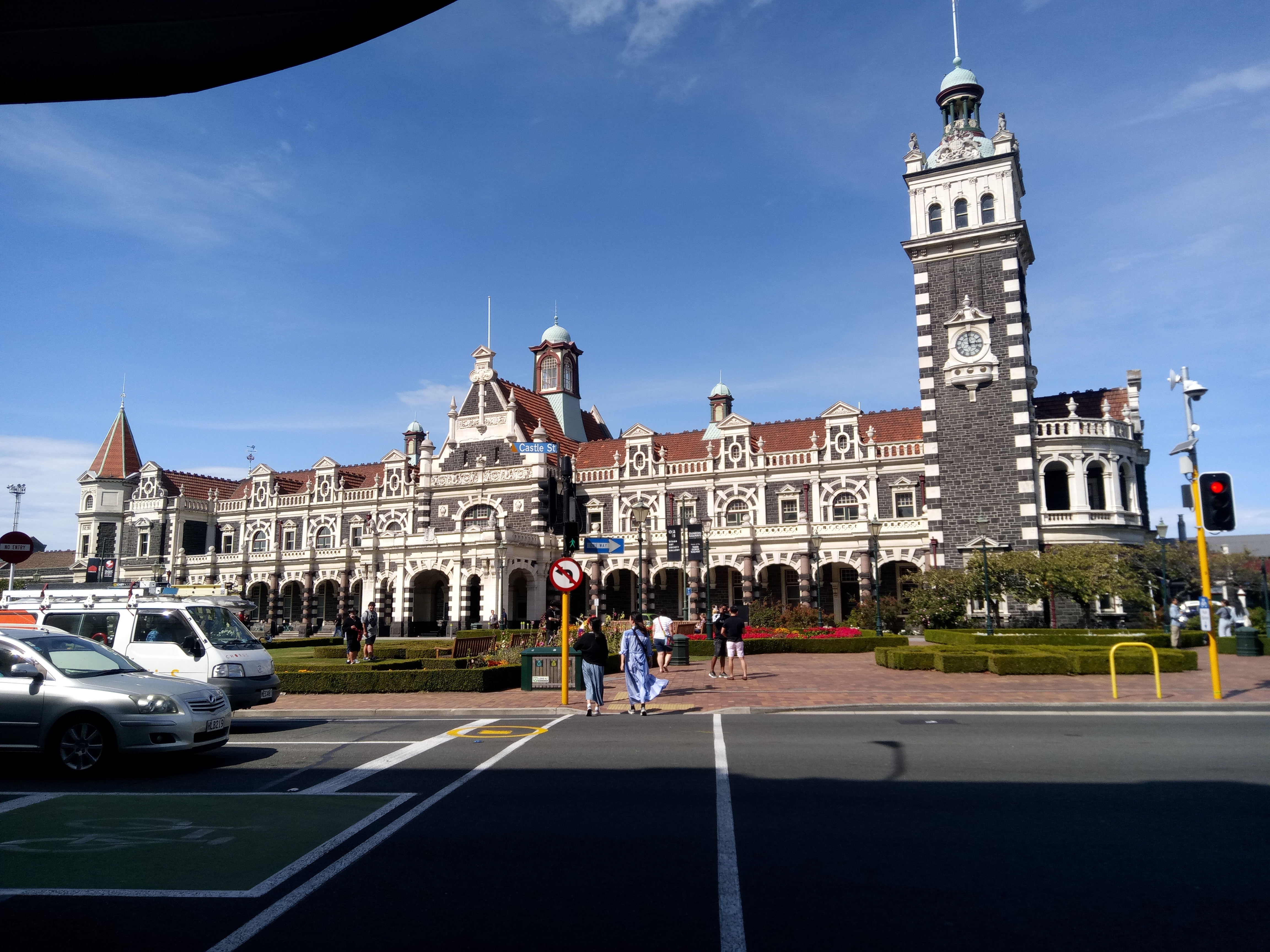 Vom Trail aus waren es dann nur noch 5km bis in die Stadt nach Dunedin. Dort haben wir den historischen Bahnhof und einige andere schöne Gebäude bestaunt und haben etwas gegessen. Für mich gab es „Battered Cod“ – den örtlichen Backfisch. Mega lecker!