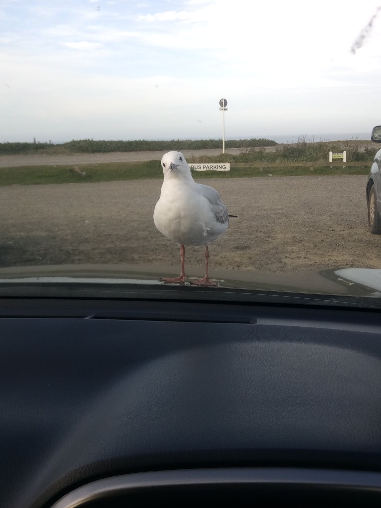 Last but Not Least sind wir dann die komplette Otakou Peninsula bis Harington Point hoch gefahren, haben das Royal Albatros Center besucht und noch mehr Robben und Kormorane beobachtet. Bei den Abfahrt hatten wir noch einen neugierigen Besucher auf der Motorhaube. Hat sich nicht stören lassen 🙂